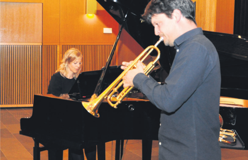 Danach folgte das abwechslungsreiche Stück «Rhapsody in Blue», das Patricia Ulrich bereits bei ihrem Auftritt 2012 zum Besten gegeben hatte. Im weiteren Verlauf des Konzerts stellten Richter und Ulrich durch gefühlvolle Balladen sowie furiose Tonabfolgen ihr breites Repertoire unter Beweis. Dieses wurde zum Schluss vom Publikum mit einer Standing Ovation gewürdigt. Am anschliessenden Apéro wird wohl noch so manchem Gast die spezielle Kombination aus Klavierund Trompetenklängen in den Ohren nachgehallt haben.